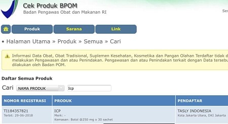 ICP telah teregistrasi di Badan POM RI dengan nomor registrasi 184357821.
